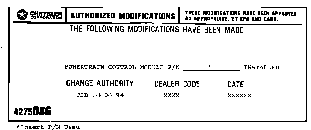9. Type the necessary information on the "Authorized Software Update Label" and attach to the PCM.