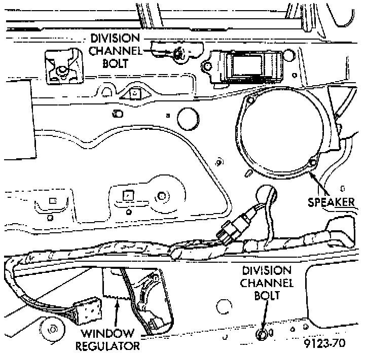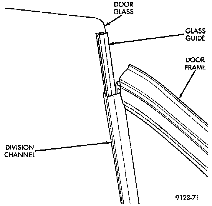 3. Remove bolts holding division channel to inner door panel.