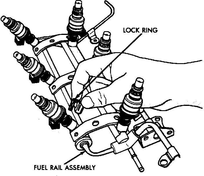 The fuel rail performs the dual functions of fuel supply to the injection components, and providing the necessary brackets and fittings to mount the components to the engine. Fuel enters the fuel rail at the inlet tube, proceeds to the 6 fuel injectors and fuel pressure regulator, and returns to the tank via the fuel return line. The fuel rail is under constant fuel pressure and fuel pressure release is required prior to servicing.