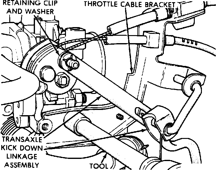 3. Remove throttle cable and transaxle kickdown linkage.