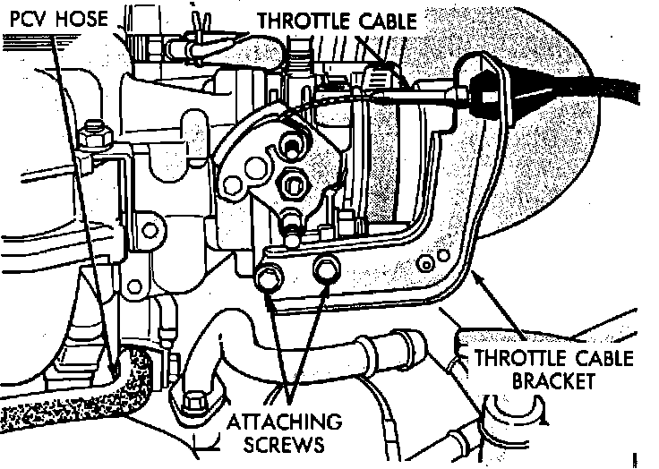 8. Install throttle cable, and air inlet hose assembly. Connect negative battery cable.