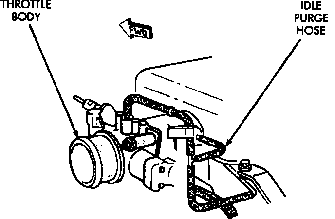 2. Disconnect the idle purge hose from vacuum tube under the intake manifold.