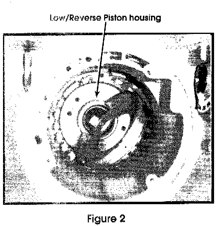 Make sure that the orifice/screen assembly is in place in the low/rev. piston (figure 1). It has been known to blow out resulting in a 1/8" hole in the piston, rather than a .020" orifice.