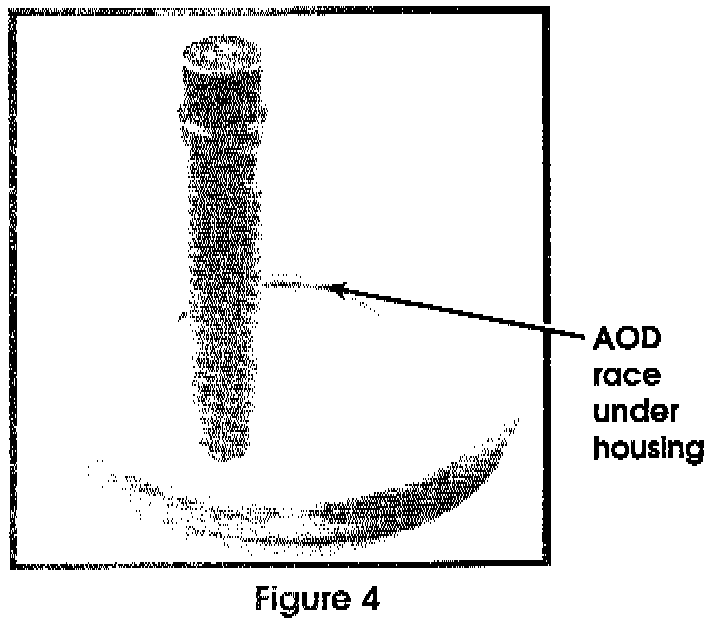 The low/rev. accumulator cover has an "O"-ring in it's groove. This groove is closer to one side of the cover than the other (figure 6). If the cover is installed into the case upside down, the "O"-ring will not go down far enough into its case bore to be supported correctly. The "O"-ring blows itself out of its groove in bits and pieces, creating a substantial leak in the apply circuit.