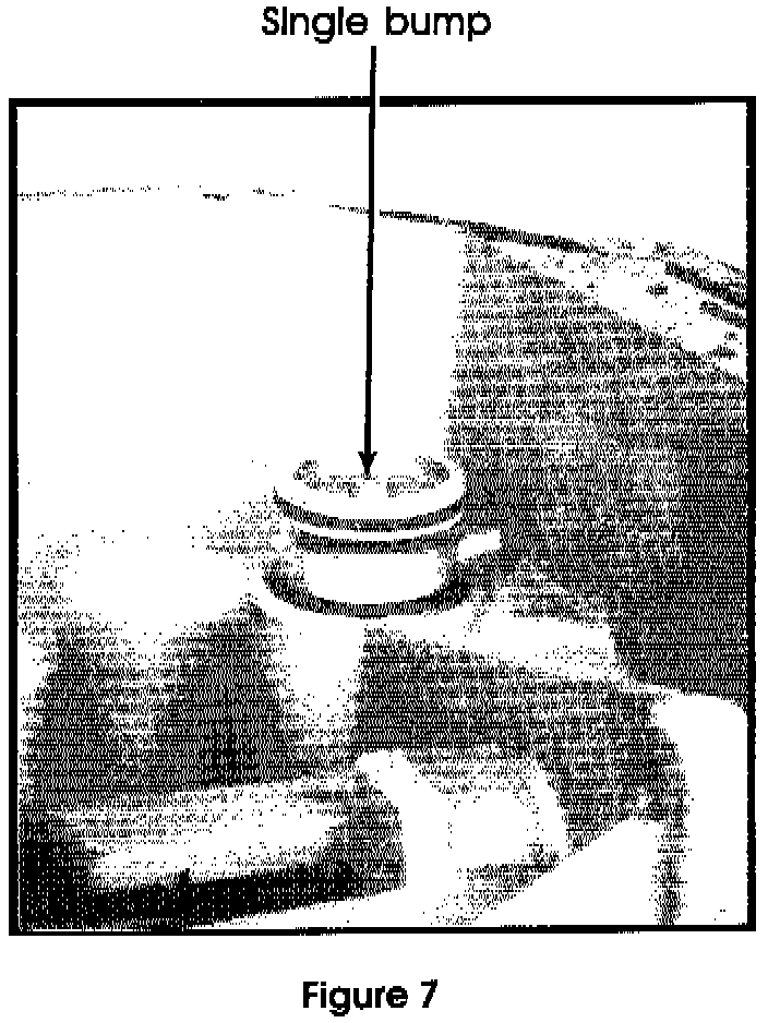 The cover should be installed with the three bumps facing the accumulator and the single bump facing the snap-ring (figure 7).