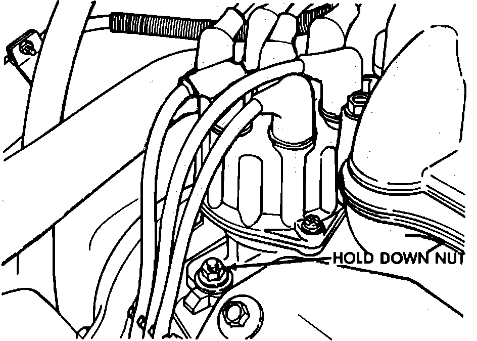 - If timing is not within ±2° of specifications, loosen distributor hold-down bolt just enough to allow distributor to be rotated. Rotate distributor until timing is within specification. Tighten distributor hold-down bolt, and recheck timing.