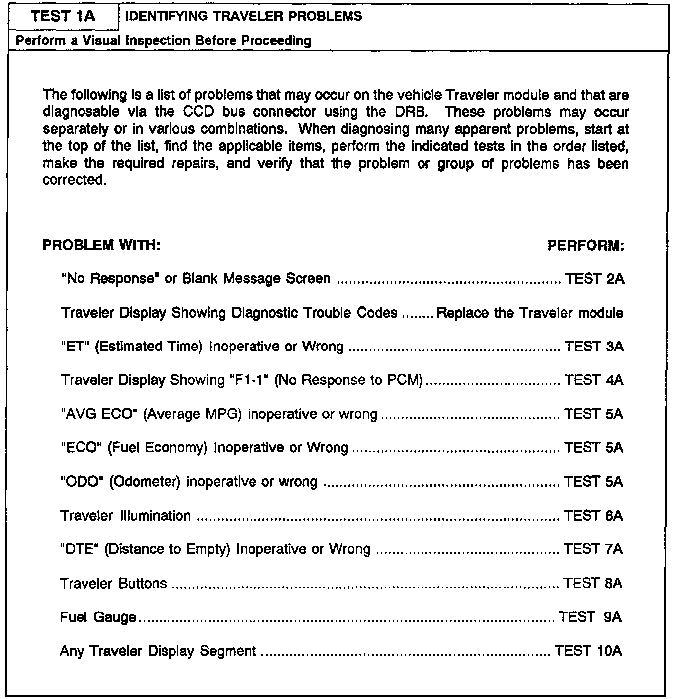 Test 1A - Identifying Traveler Problems