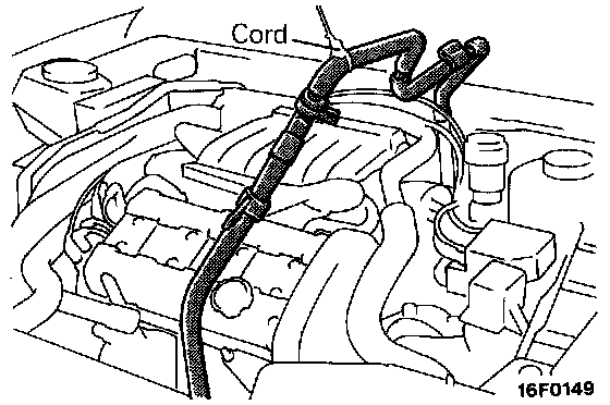 On vehicles with air conditioning, remove the clamp nut, raise the suction hose and suspend it from the engine hood using a cord.