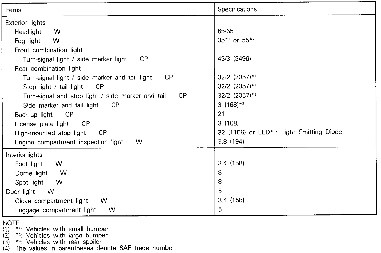 Lighting System General Specifications