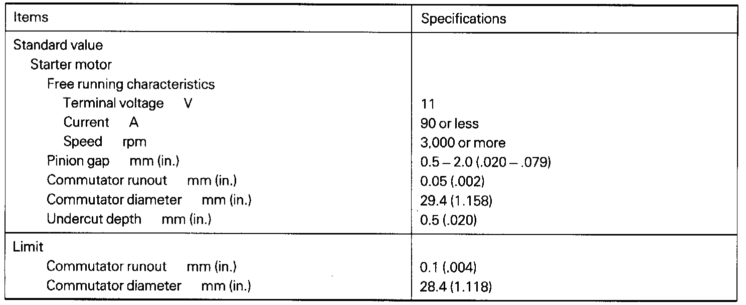 Starter Motor Service Specifications:
