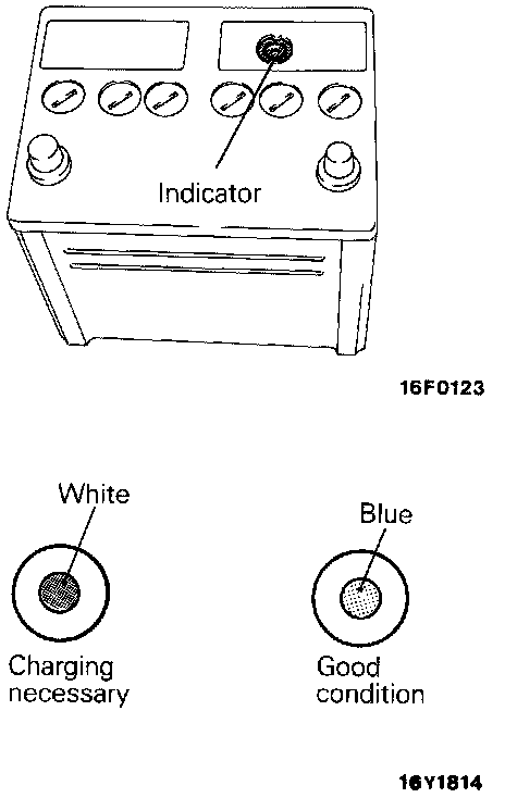 The battery contains a visual test indicator which gives blue signal when an adequate charge level exists, and white signal when charging is required.