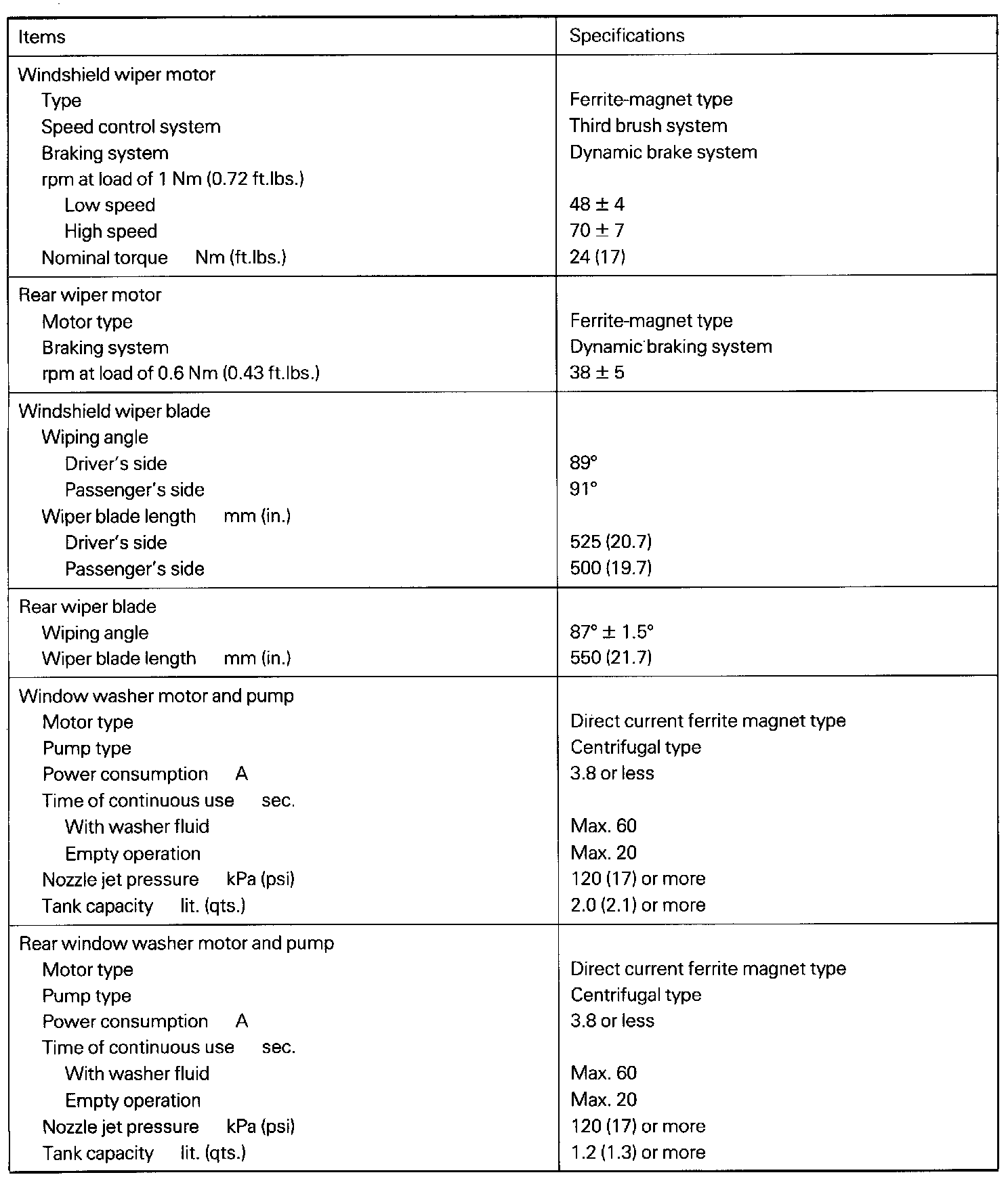 Wiper & Washer System General Specifications (Part 2 0f 2):
