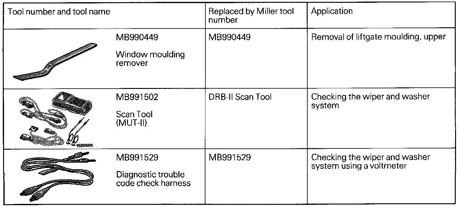 Wiper Washer System Special Tools: