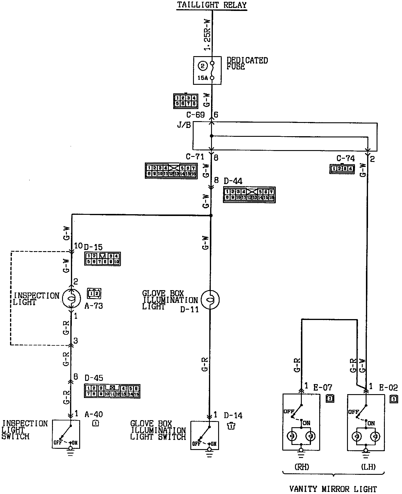 Glove Box Light, Vanity Mirror Light, And Inspection Light Circuit: