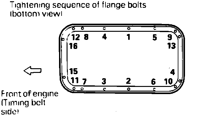 b. Apply a bead of sealant around flange of oil pan and tighten oil pan bolts in sequence to specification.
