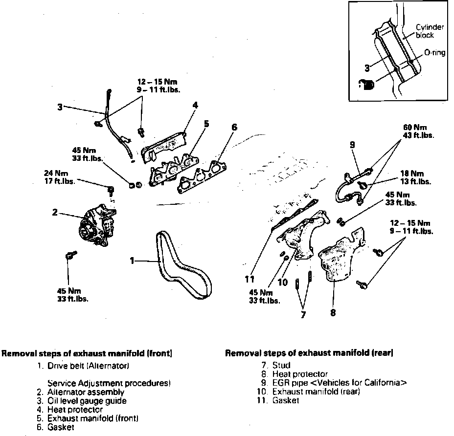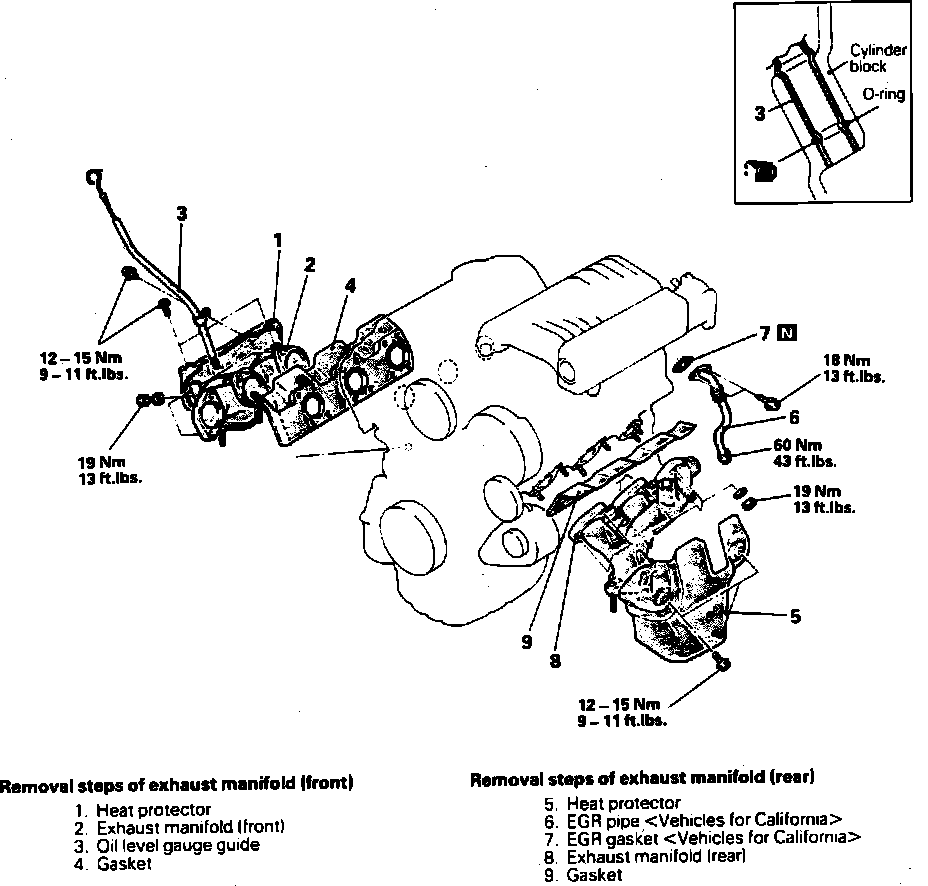 1. Remove front exhaust pipe.Fig. 17 Exhaust Manifold Replacement. SOHC: