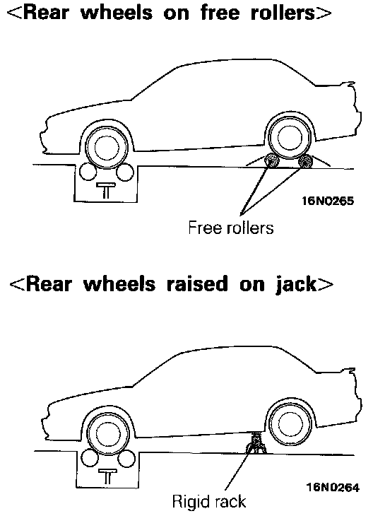 3. Set free rollers securely on the floor according to the wheelbase and rear tread of the vehicle (when rear wheels are to be set on free rollers).