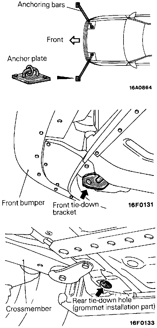 6. Attach anchoring bars on the tie-down brackets and secure their ends to the anchor plates.