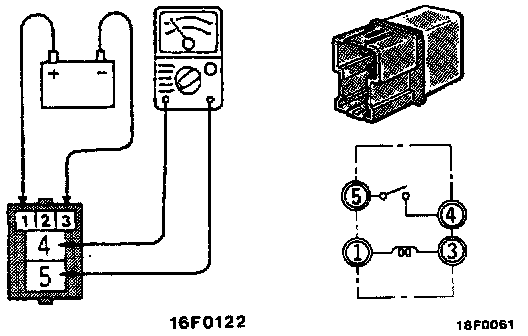 Connect battery to terminal 1 and check continuity between terminals with terminal 3 grounded.