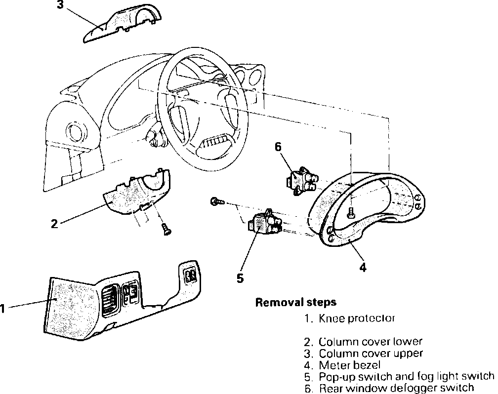 a. Remove steering column cover upper to lower attaching screws, then carefully unsnap upper steering column cover from lower.
