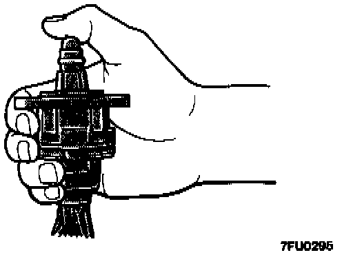 5. With the Idle Air Control Motor as shown in the illustration, connect the negative - terminal of the power supply to each clip as described in the following steps, and check whether or not a vibrating feeling (a feeling of very slight vibration of the stepper motor) is generated as a result of the activation of the stepper motor.