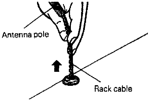 (7) With the antenna mast upright and the radio switch OFF, feed the rack cable. As the rack is taken up, insert the mast into the motor assembly.
