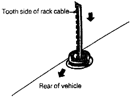 (5) Turn the tooth side of the rack toward the rear of the vehicle (90° clockwise) to bring the rack cable into mesh with the motor gear.