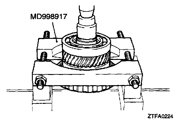 1. Using the special tool, remove the transfer drive gear together with two bearings from the output flange.