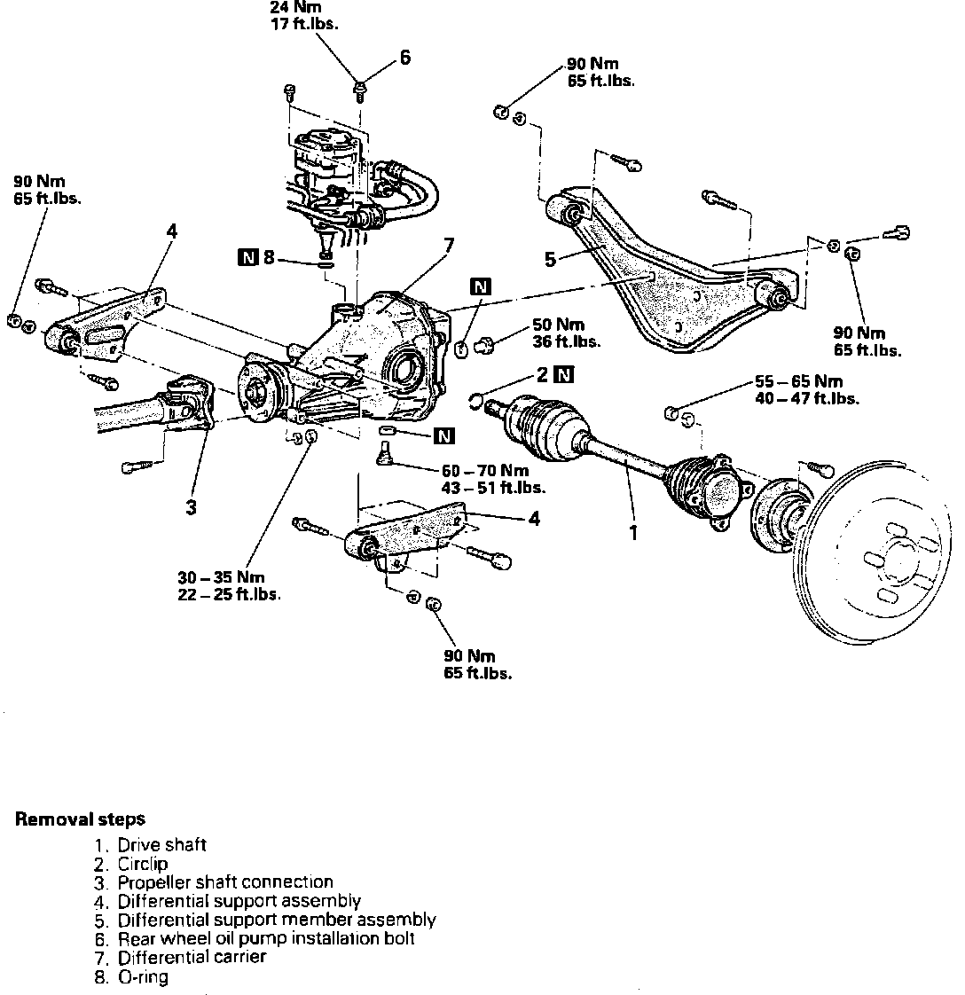 a. Using suitable tool, remove driveshaft from differential carrier. Ensure differential carrier oil seal is not damaged by driveshaft spline.