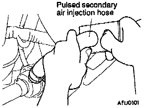 Disconnect the pulsed secondary air injection hose from the air cleaner and place a small steel plate against the end of the hose.