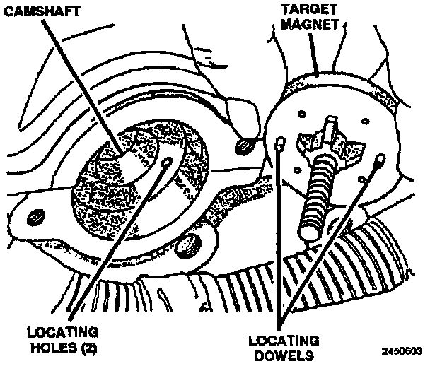 To install the target magnet, align the off-set tabs of the magnet with the off-set holes of the camshaft.