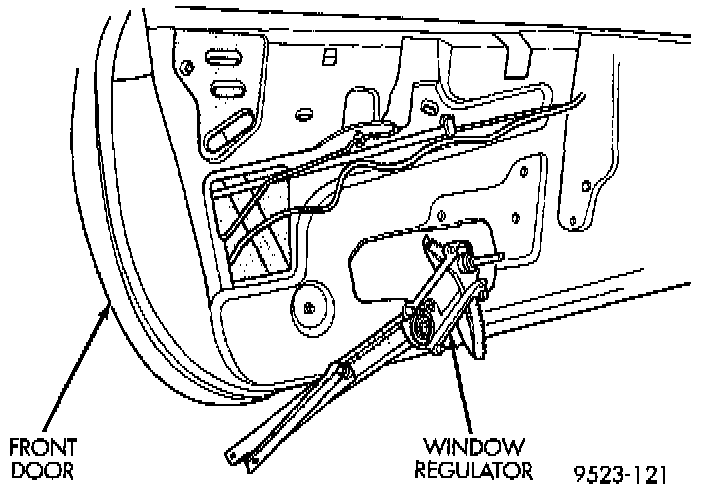 NOTE: Power and manual door glass regulators are serviced using the same procedures. For power window motor service procedures, refer to Power Window Motor/Service and Repair.REMOVAL