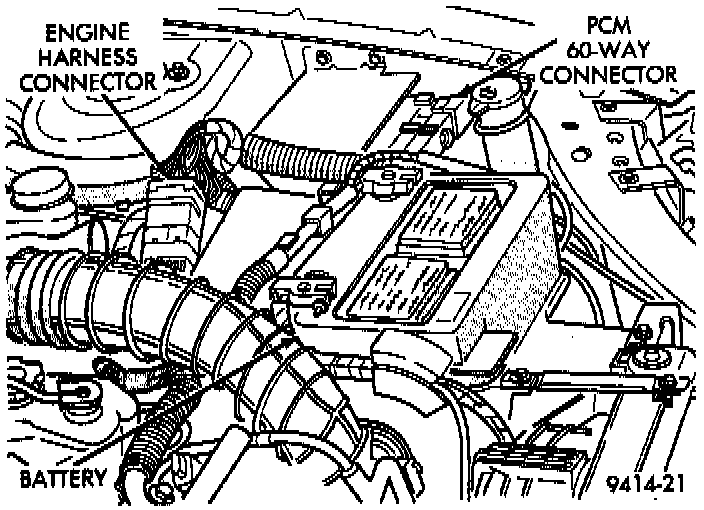 Fig. 1 Battery, PCM, And Main Engine Harness Connector: