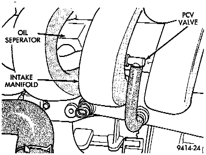 6. Check hose connections between the PCV valve vacuum port - intake manifold and the oil separator.
