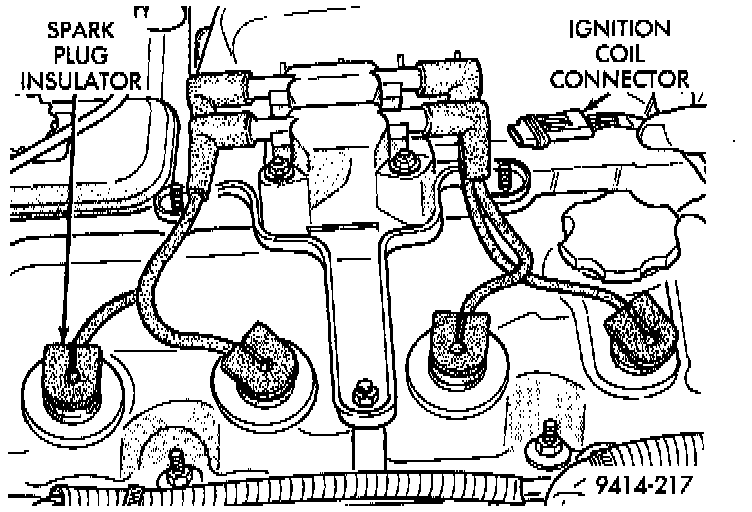 9. Inspect the ignition coil electrical connector. Ensure the spark plug insulators are firmly seated over the spark plugs.