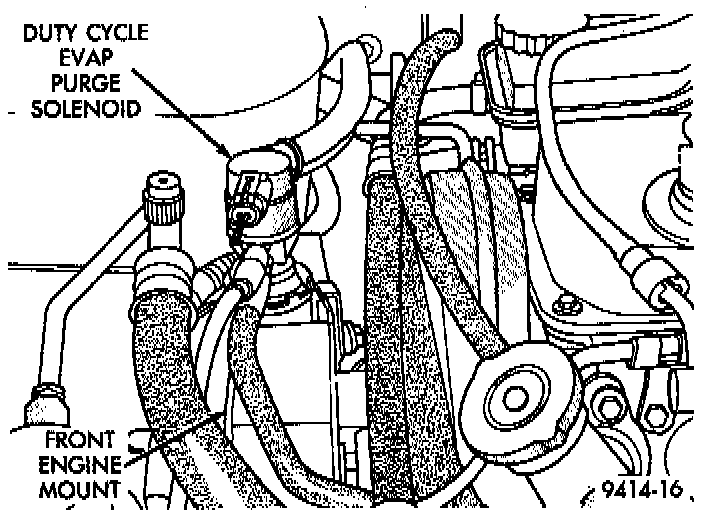10. Inspect the electrical and hose connections at the duty cycle purge solenoid.
