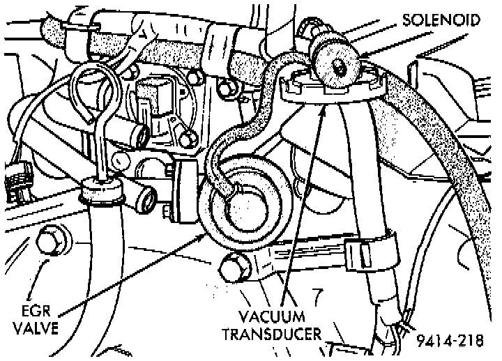 16. Check the electrical connector at the Electronic EGR Transducer (EET). Inspect the vacuum and back pressure hoses at the solenoid and transducer for leaks.