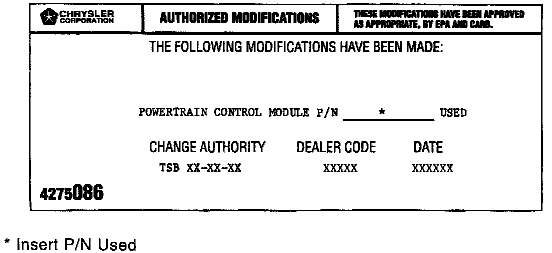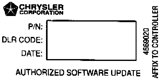 9. Type the necessary information on the "Authorized Software Update" label, P/N 4669020. Attach the label to the PCM and cover the label with the clear plastic overlay.