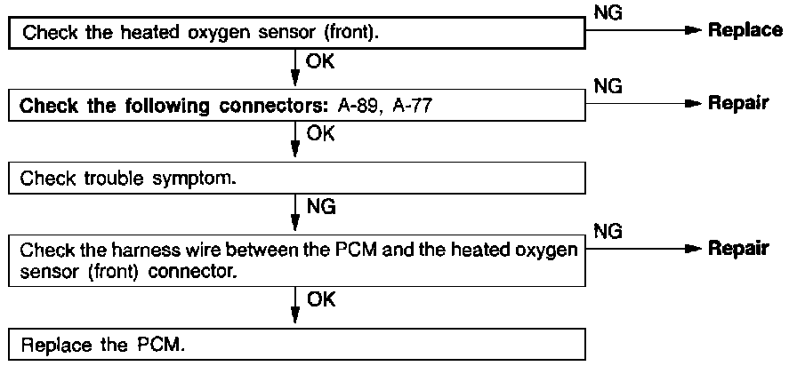 - Neither rich nor lean condition is detected from the front bank heated oxygen sensor input. (voltage is 0.5 volts for 1.5 minutes)