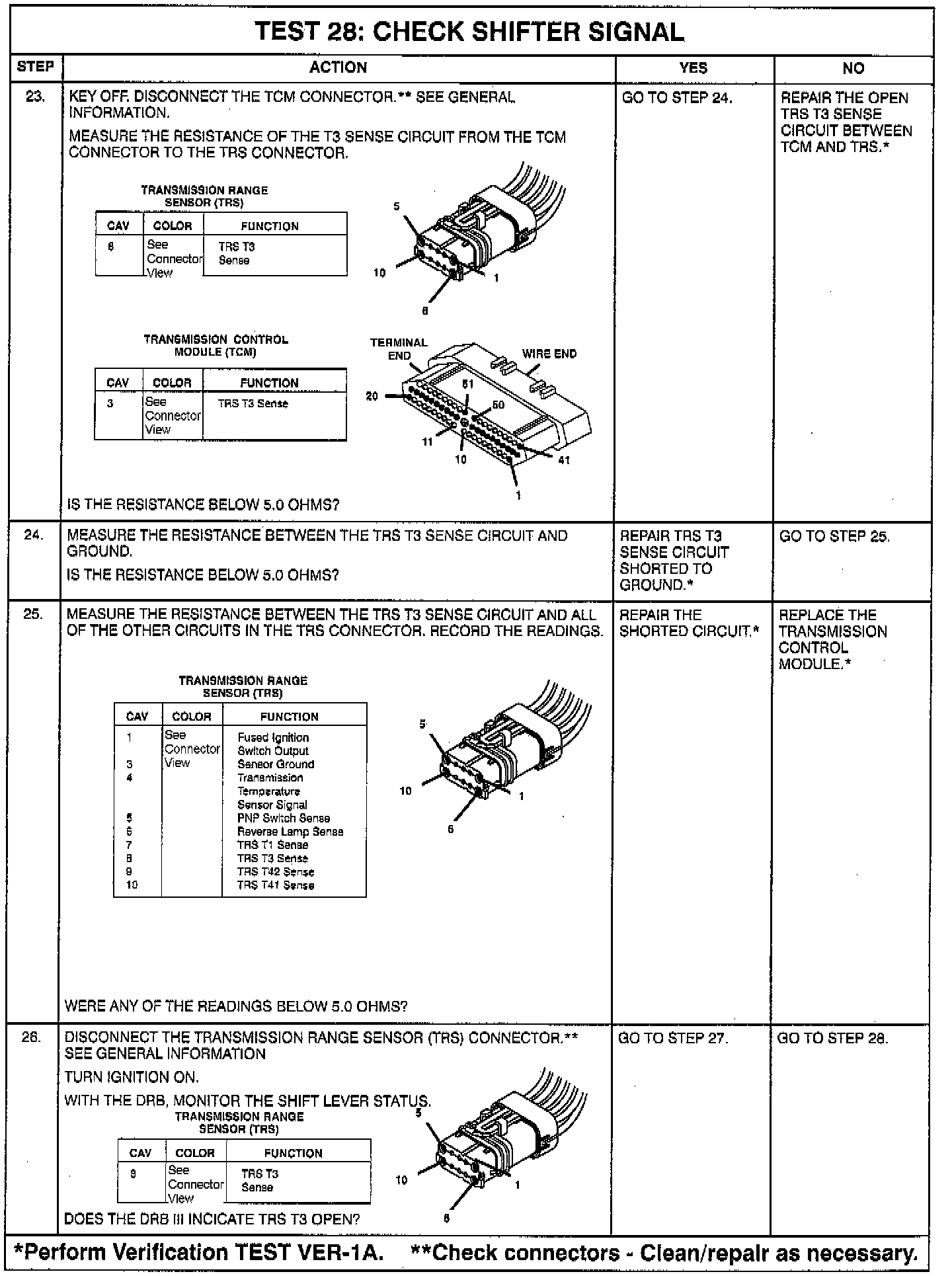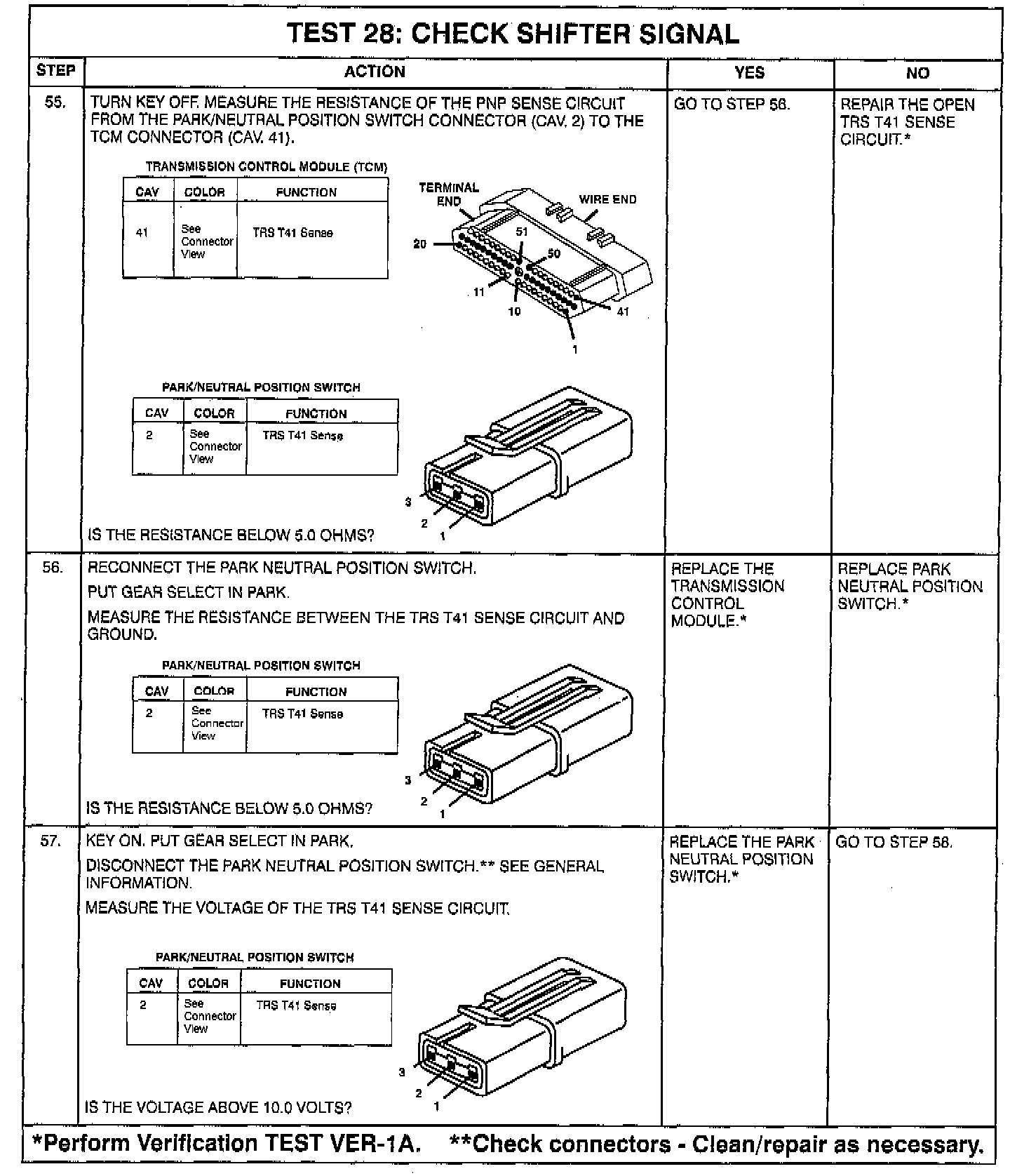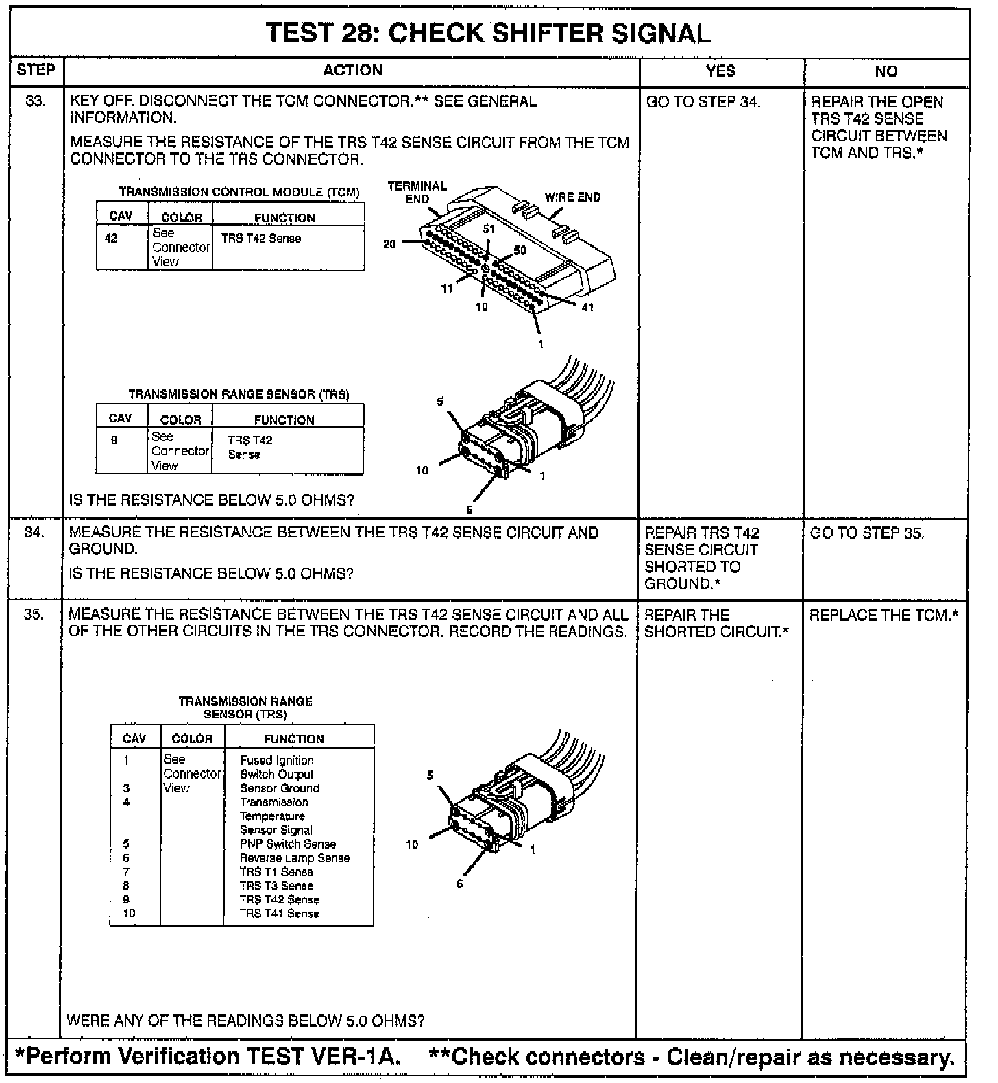 - Intermittent T1, T3, T41, T42 **circuits. Check for corrosion, terminal push-outs or spread terminals at 60-way and/or TRS, P/N, or PRNDL switch 10-way connector.