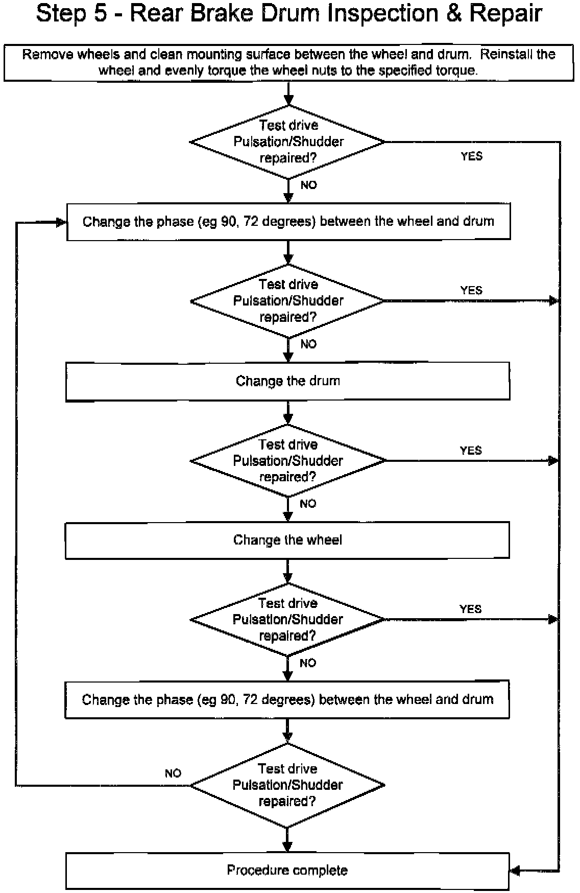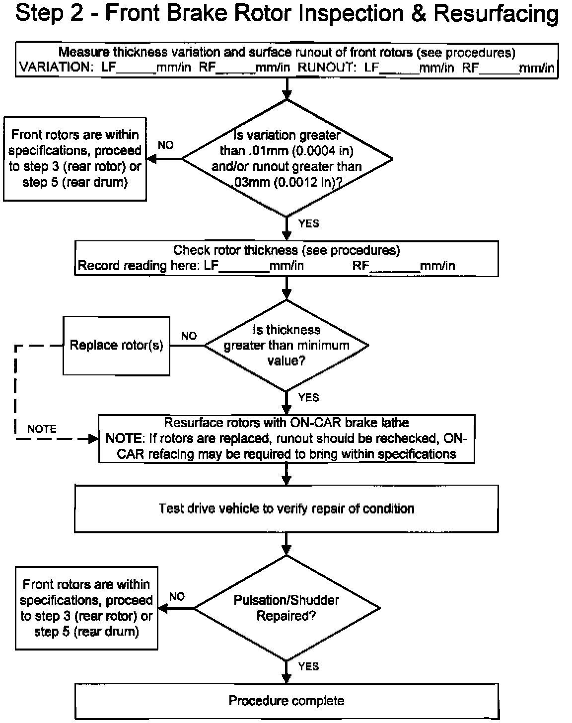 If brake pulsation or shudder is experienced, use the charts and procedures to make appropriate repairs to the braking system.
