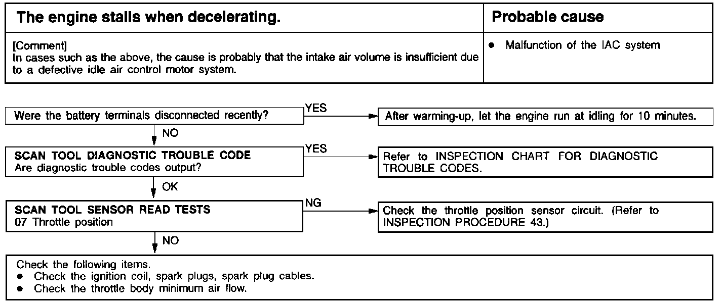 - In cases such as the above, the cause is probably that the intake air volume is insufficient due to a defective idle air control motor system.