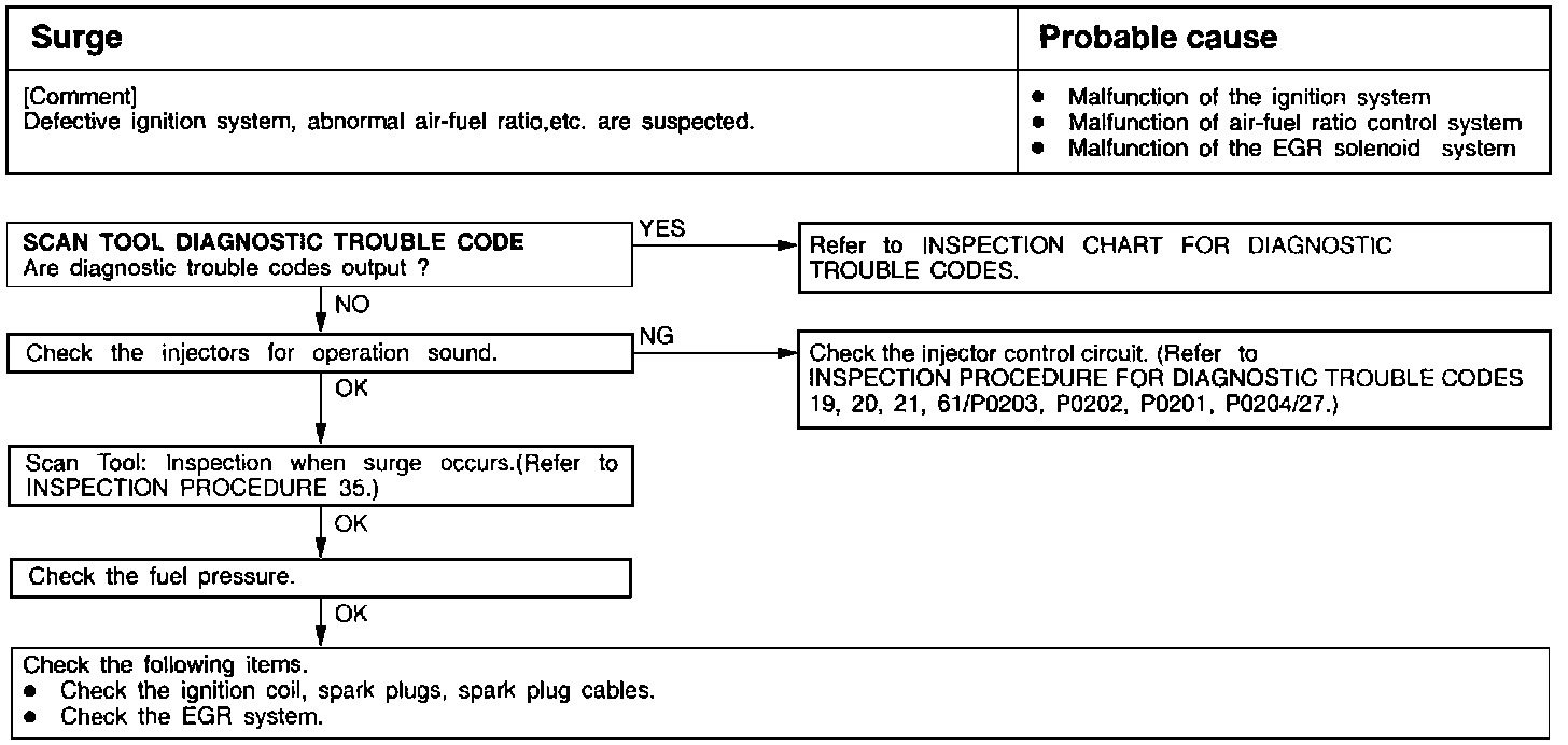 - Defective ignition system, abnormal air-fuel ratio, etc. are suspected.
