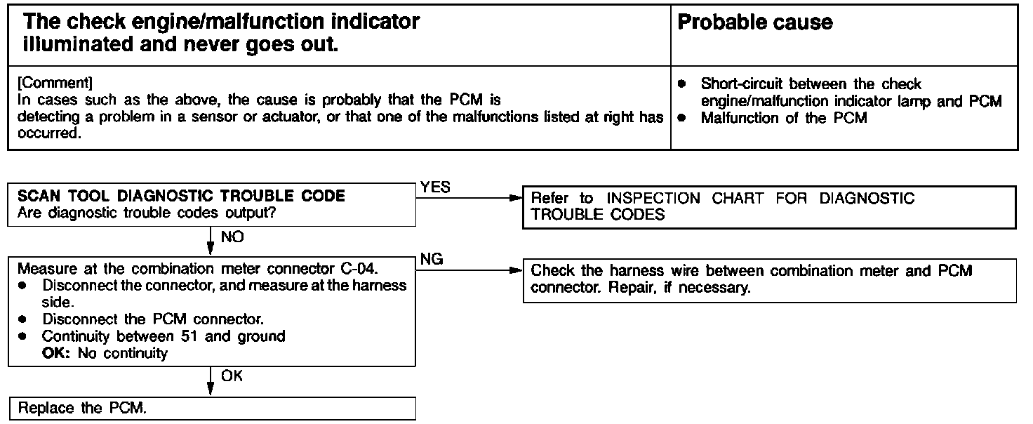- Defective check engine malfunction indicator lamp circuit