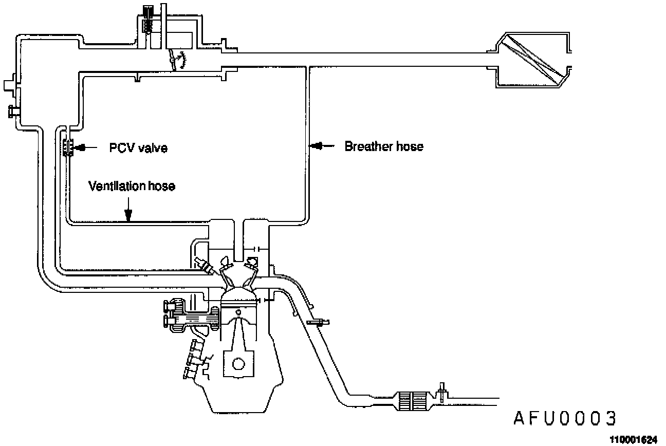 Fresh air is sent from the air cleaner into the crankcase through the breather hose, to be mixed with the blow-by gases inside the crankcase.
