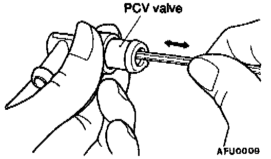 1. Insert a thin rod into the PCV valve from the side, (rocker cover installation side), and move the rod back and forth to confirm that the plunger moves.