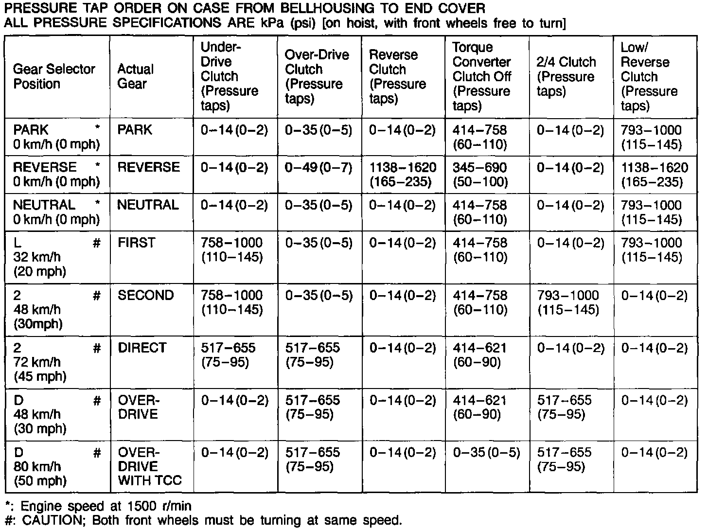 Pressure Check Specifications: