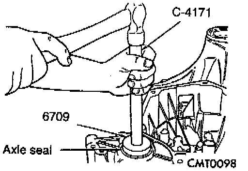 3. Install axle seal on tool #6709 w/C-4171, or equivalents and insert into axle shaft seal bore.