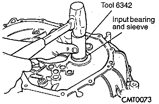 1. Install tool #6342, or equivalent over input bearing on the gear case side of the transaxle clutch housing.