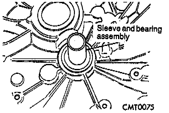 1. Apply coating of Loctite sealant on bearing outer diameter. Position sleeve and bearing assembly at input bearing bore.
